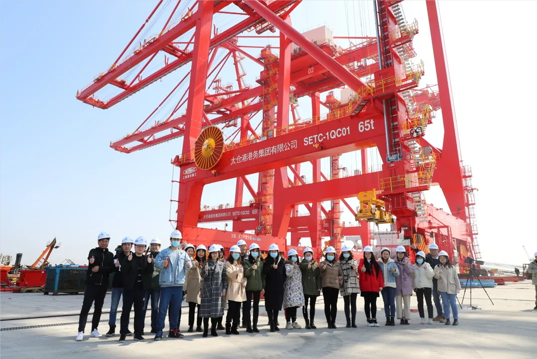 港航重器 | 太倉四期首臺集裝箱岸橋成功落軌